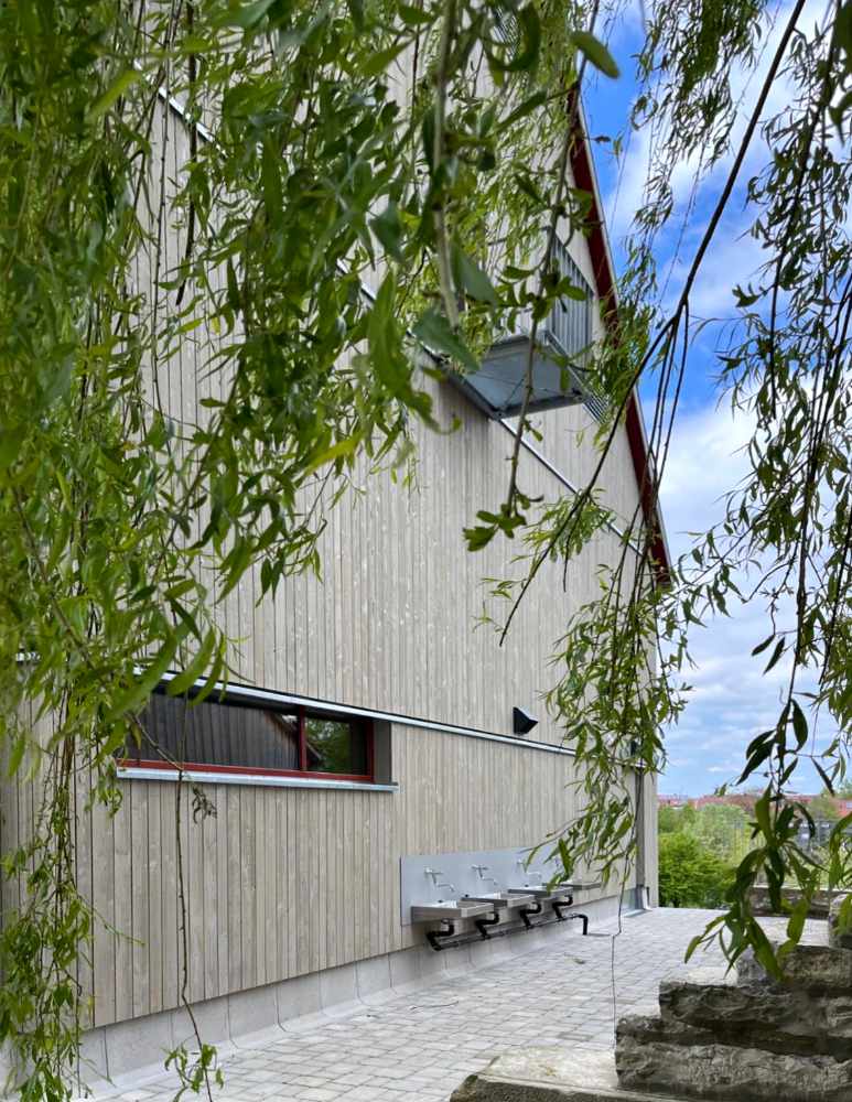 Neubau eines Multifunktionsgebäudes als Ersatz für abgebrannte Scheune mit Jugendräumen, Mehrzweckraum und Kletterhalle.